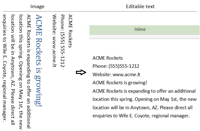 The scanned text that is returned can be inserted into generated content, or otherwise processed by pipeline instructions.